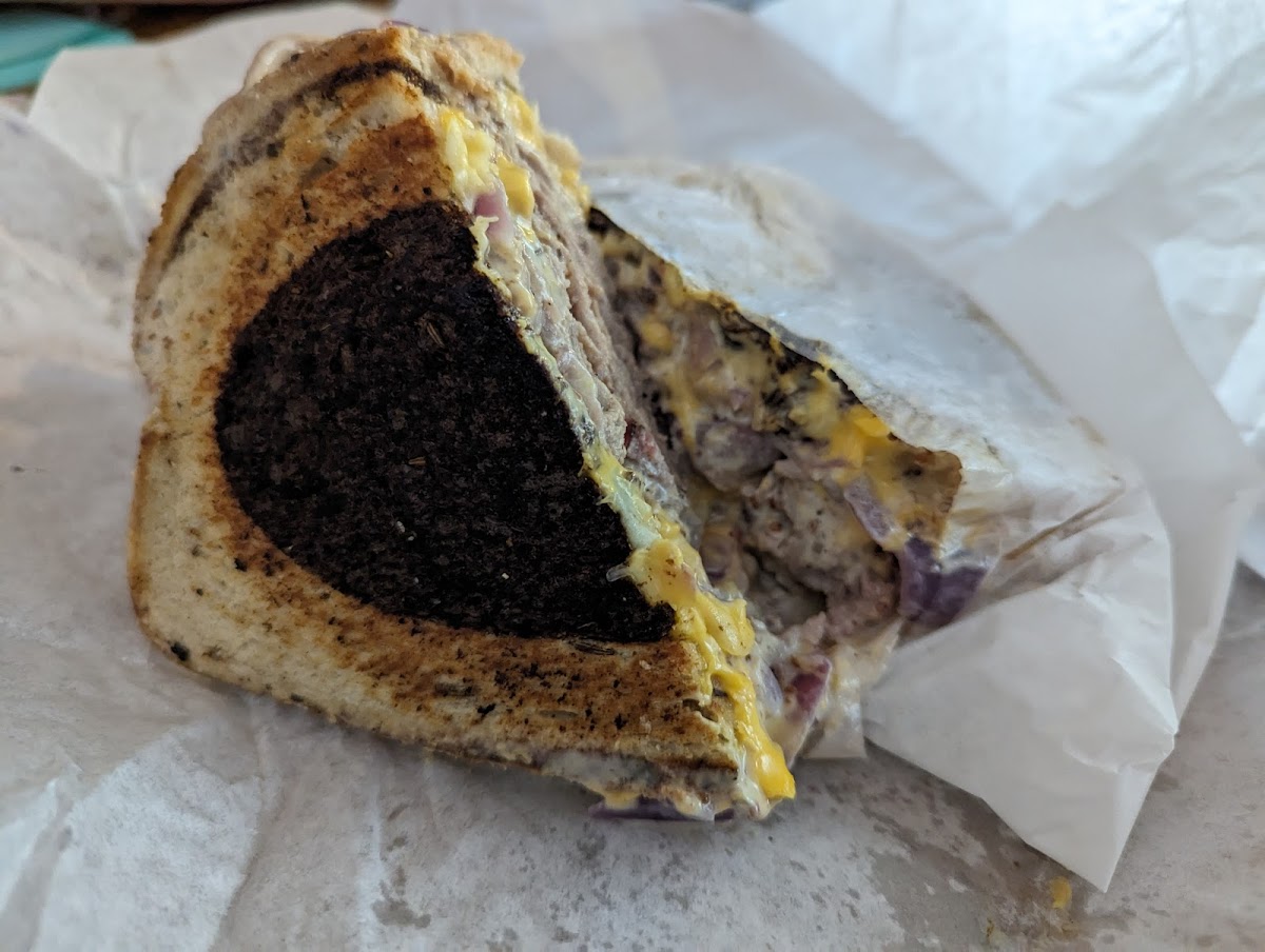 I love food, this place scratched my itch for a sandwich. Full of ingredients to have multidimensional flavors hitting. The messiness of it was an experience but im glad bc the price was up there for sure. Funny art inside too. Front desk guy was chill and the music playing was top tier. Wouldve ate outside hut it was raining